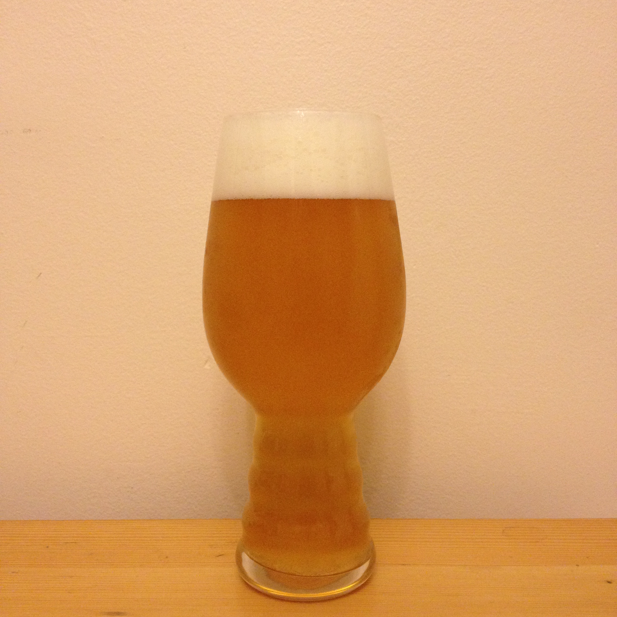 Beer served in one of those new IPA glasses, for some reason. Beer is yellow to light amber with some haziness, nice white head, decent retention. Nice lacing on the glass, moderate carbonation.