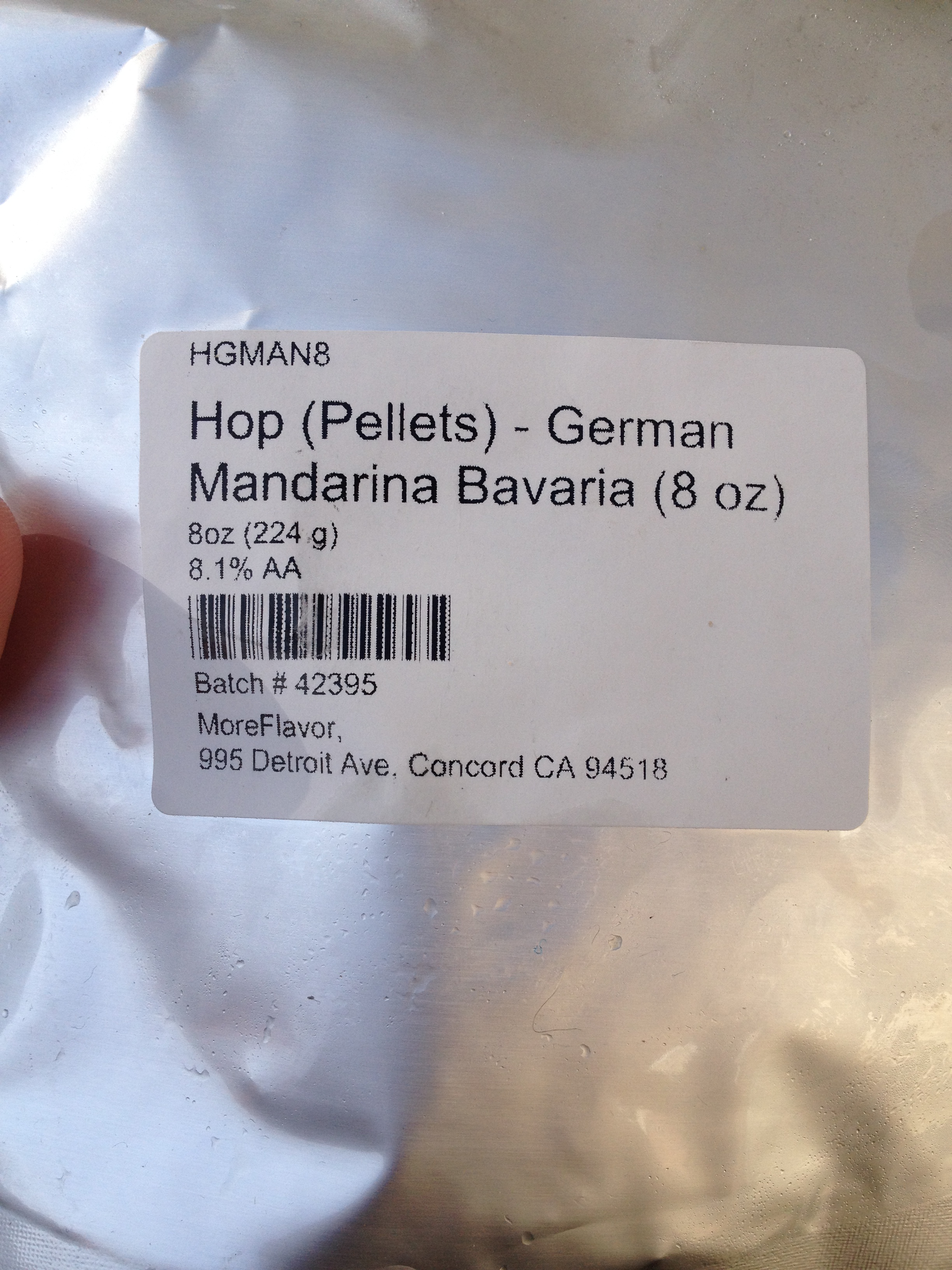 Mandarina Bavaria hops are a new hop to me…pretty excited about these. I love new hops, honestly it is incredible that after years of making hoppy beers there are still dozens of hops I’ve never used. These are a daughter of cascade, developed at  the Hop Research Institute in Hull. This hop is described as “tangerine” in aroma and flavor (the pellets smell amazing). I’ve asked other homebrewers about this hop and several people have told me “tastes like cuties”…those little oranges you buy in the crates at the grocery store. Yep, I’m sold.