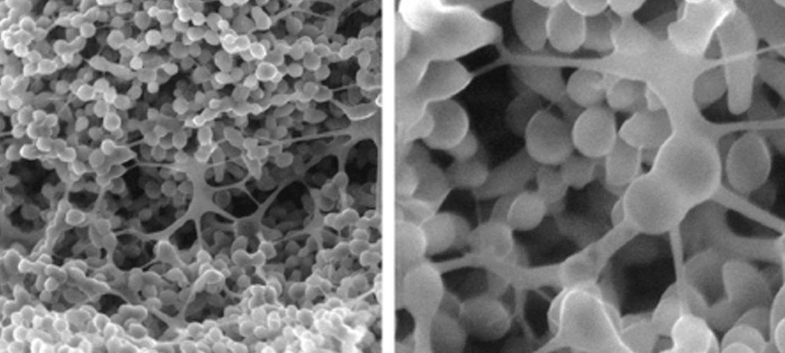 Scanning electron microscopy of yeast colonies forming extracellular matrix (from “Domestication of wild Saccharomyces cerevisiae is accompanied by changes in gene expression and colony morphology” in 2003)