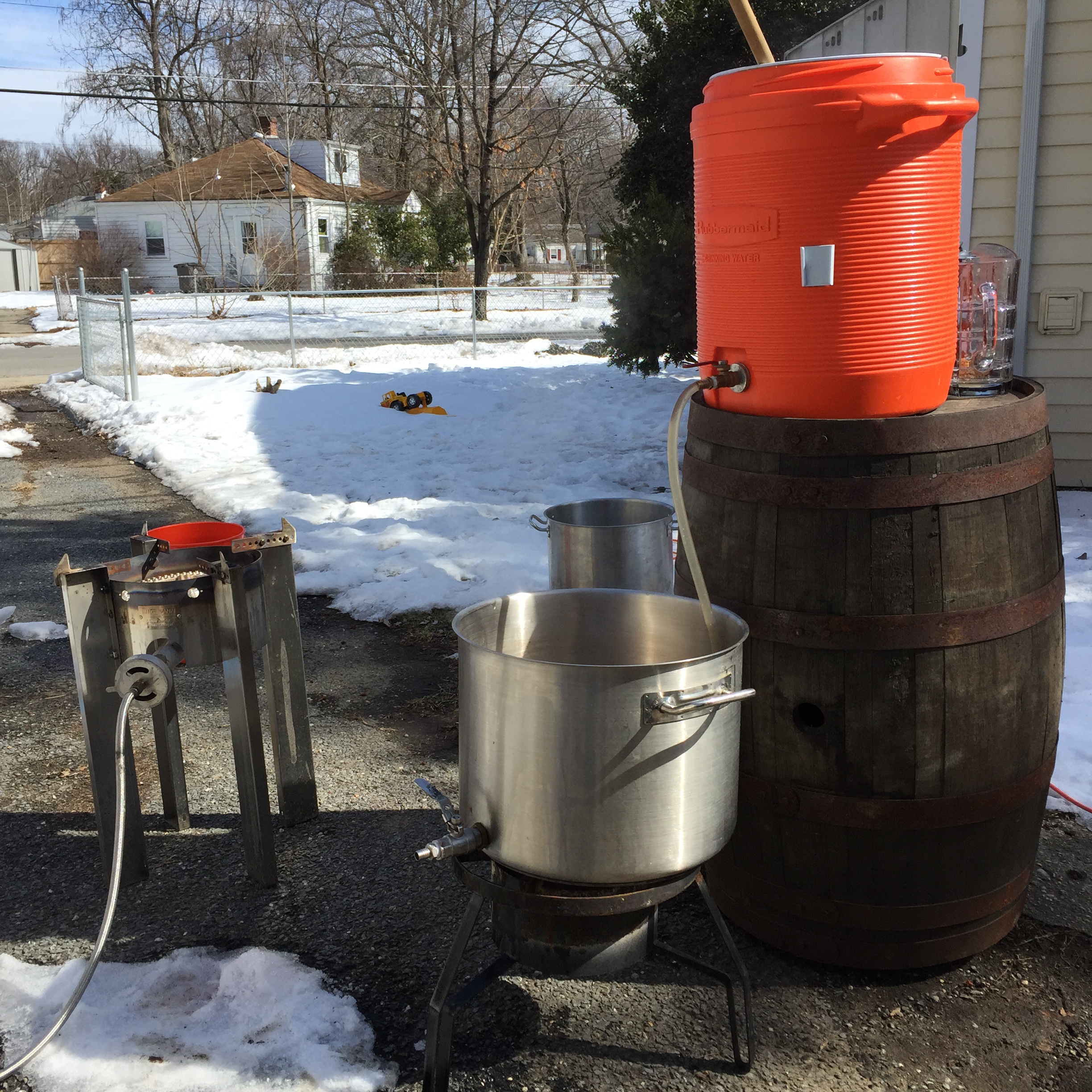 I’m going to get this out of the way. I grew up in Phoenix, Arizona. Got my Ph.D. in Gainesville, FL. When I took my job in the DC metro area, I was under the impression that the winters here were mild. Maybe I’m just a warm weather wimp but the windchill hit -28 F about a week before the brew day. The pipes froze in the house and I had to crawl around in the crawlspace when the temperature was 0 F (at least under the house I wasn’t exposed to the 30 mph wind that was generating that insanely low windchill. My ambitions to brew a ton in January / February was met with the harsh reality of intolerable weather. I know there is no such thing as bad weather, just inadequate preparation but the weather got the better of me for about 3 weeks. I fucking hate winter. I’ll catch up because I have to but that’s why the brewing posts have been spaced out further than I wanted the past few months. Maybe you didn’t notice.